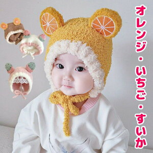 フルーツが耳のようについたかわいい帽子 いちご オレンジ すいか 輪切り くま クマ ベア うさぎ ねこ耳 ネコ耳 みみ付 耳付き ニット帽 帽子 とんがり帽子■ 商品説明フルーツが耳のようについたかわいいもこもこ帽子 あご紐付きでズレに