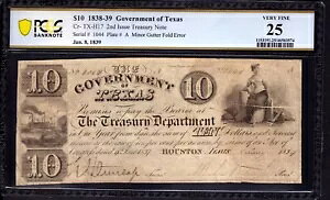 1839 $10 GOVERNMENT OF HOUSTON TEXAS TX-H17 TREASURY NOTE GUTTER FOLD PCGS VF 25商品について額面 $10紙幣の種類認証番号 46503574グレード25製...