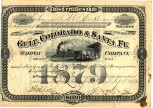1882 Galveston Texas - Gulf Colorado & Santa Fe RW - EX RARE Stock Certificate商品について出品者コメント「美しい - 非常に希少 - オリジナルで本物」注意...