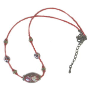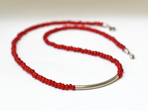 金で発色させた希少なアンティークヴェネチア金赤ホワイトハーツ極小ビーズに、ワンポイントにカレンシルバーを入れて繋いだ、当店オリジナルのネックレスです。可愛くて軽量な1本です。留金は簡単に脱着が可能なボタン式を採用してお