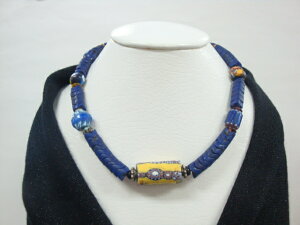 アンティークヴェネチアホワイトハーツビーズに、湾曲したメタルビーズを装着した当店オリジナルのネックレスです。カジュアルで軽量な1本です。留金は簡単に脱着が可能なボタン式を採用しております。 ■商品詳細■ 全長: 約51.0cm 重