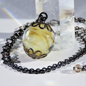 特大サイズの20mmほたる玉を、優雅で落ち着いたティアドロップ型のペンダントトップにしました。スッキリした服装にさっと付ければ、お洒落な和美人のできあがりです。稀にみる直径約20mmの琉球ほたる玉で存在感と豪華さ抜群です。 海の