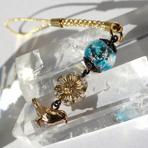 【高級ほたる玉根付】 愛らしい雀とレトロな花が揺れる、縁起の良いほたる玉根付ストラップ。 職人厳選のホタルガラスが、和装に華を添えます。 ハンドバッグチャーム、スマホケースやがま口飾りとしても活躍。 雀はパートナーを大切に