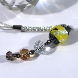 【高級ほたる玉根付】 日に当たるレモンのように明るい、ほたる玉根付ストラップ。 煌めくホタルガラスが、和装に華を添えます。 粋な編み込み紐は美しく強度があり、浴衣や着物の帯との相性が抜群。 ハンドバッグチャーム...
