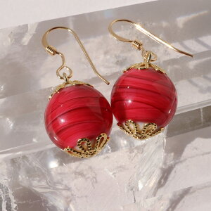 【高級とんぼ玉ピアス】 とんぼ玉そのものの艶と存在感を際立たせたピアス。 大人の女性の耳元に、上品な色を添えるガラスジュエリーです。 艶と奥行きのある赤と、金色の輝きが、凛とした印象。 13mmサイズのとんぼ玉が...