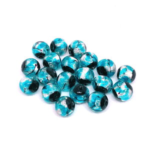 【こちらの商品は4粒販売になります】 穴のあいたガラスビーズに銀箔を閉じ込めたとんぼ玉(とんぼだま、蜻蛉玉)です。 沖縄県は石垣島にあるミシュランガイドにも登録された名所・川平湾をイメージしたエメラルドブルーが美しいお品