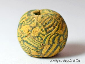 ジャワ島出土の発掘ビーズです。黄色と緑のコントラストがとても良い、素晴らしい雰囲気を持つジャワ玉です。多少磨耗,傷がありますが状態は概ね良好です。 ◆商品詳細◆ 粒のサイズ:14.0X16.5mm(高さX直径) 孔 3.5mm 材質:...
