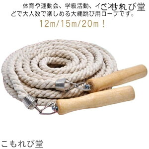 12m/15m/20m!体育や運動会、学級活動、イベントなどで大人数で楽しめる大縄跳び用ロープです。グリップは木製なので手になじみやすく、痛くなりにくい設計となっています。木製グリップと縄の接続部は3...