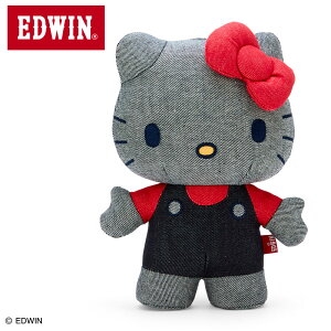 デニムのEDWINとキティのクールなコラボレーション☆デニムで作られた大人かわいいキティはインテリア小物にもピッタリ★ロゴが入った赤タグがスペシャル感UP♪■サイズ約幅18×奥行9.5×高さ23cm■主な素材、原料綿■詳細●対象年齢6才以上