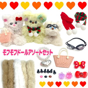 ■極モフのモールドールが3匹作れるセットです♪モールドールに欠かせない目と鼻3匹分、バックやリボン・マフラーなどのオシャレ小物も付いてるよ☆ ワイヤーキーホルダーを耳に通してすぐにカバンにも付けれるよ!! ▼こちらもおすす