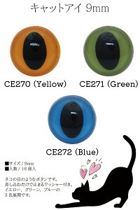 ■サイズ/ 9mm ■入数/ 16個入 ネコの目のようなボタンです。 差し込むだけで止まるワッシャー付き。 イエロー、グリーン、ブルーの3色展開です。 メール便可 031024