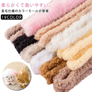 長毛仕様のカラーモールが登場?? ふわふわ質感で仕上がりかわいく?通常のモールよりも毛足が長く、まるでぬいぐるみのようなボリューム感。? ワイヤー入りで自由自在に成形可能中にワイヤーが入っているので、手