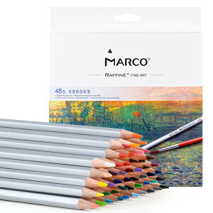 【多彩な色】48色。毛筆が付属しています。 【2.9mm太い芯】この174.5mmの長さのMarco水彩色鉛筆は、鉛筆の芯の直径が2.9mmで、高品質のトナー、粘土、接着剤から作られ、手触りが繊細で、筆致が滑らかである。 【六角軸設計...