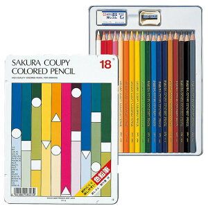 【18色】黄・山吹・橙・薄橙・茶・赤茶・黄土・朱・赤・桃・紫・水色・黄緑・緑・青・ねずみ色・黒・白 【特長1】消しゴムで消しやすい色鉛筆 【特長2】ポリマー芯なので均一な品質 【特長3】折れにくい色鉛筆 【付属】消しゴム・削り器