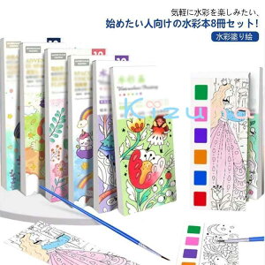 線の細い優しいタッチのイラストで、色がはみ出しても、かわいい絵に仕上がり、小さなお子様でも楽しめるぬりえ。各ページに固形水彩ブロックが施されており、付属のブラシで水につけて直接に色をつけることができます...