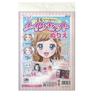 テレビゲームやアイフォンからのお休みタイムに。 商品サイズ:ぬりえ台紙/210×148mm、メイクパレット/55×102mm、リップスティック/40×φ12mm、宝石シールシート/51×41mm(宝石...
