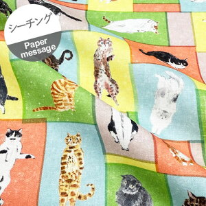 【Papermessage かみものやさん 大久保淳子 水彩画 猫柄 ねこ 薄手素材 生地 布 ハンドメイド ソーイング 手作り】