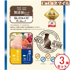 【製品情報】 <製品の特長> ●無添加ピュアシリーズ3種(鶏ささみ、まぐろ、海鮮ミックス)各20本ずつが1箱になったお得なパックを2箱おつけします ●愛猫と家族の絆 コミュニケーショントリーツ ●添加物不使用...