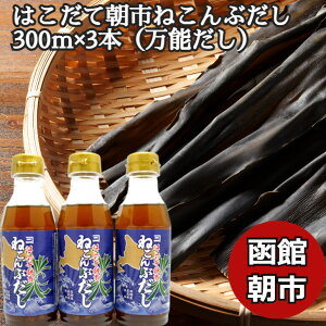 商品情報商品名はこだて朝市ねこんぶだし 3本300ml×3本商品内容北海道・函館産の真昆布を贅沢に使用し、じっくりとだしを抽出し丁寧に仕上げました。水で割るだけでいろいろなお料理に活用できる万能だしです。函館産真昆布の濃厚な味わ
