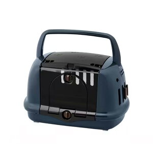 前扉を上部に収納してハウスとしても使用できるキャリーです。上窓が開閉するのでペットの出し入れがラクにできます。小窓からおやつを与えたり、中の様子を確認できます。車の移動の際に便利なシートベルト固定用パーツ付きです。給