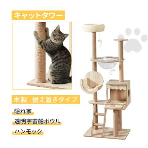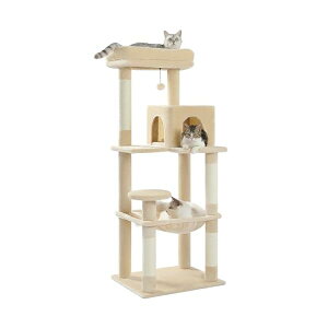 キャットタワー 猫タワー スリム 大型猫 据え置き 省スペース 登りやすい ハンモック 見晴台 ねこハウス ボンボン 天然麻紐 爪とぎ 運動不足解消 多頭飼い ベージュ 高さ143cmブランド色ベージュ...