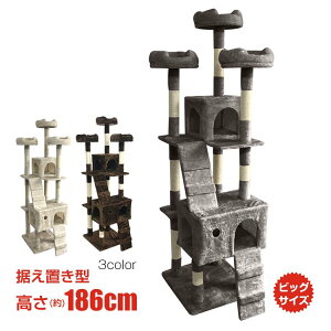a 商品説明 【商品内容】: キャットタワー【カラー】:ベージュ、ブラウン、グレー【サイズ(約)】:50cm×68cm×186cm【重量(約)】:18.46kg■ネコちゃんが喜ぶ仕掛けが沢山ある大きなサイズのキャットタワー! ■高いと...
