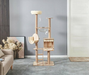 サイズ:全高約 185cm、ベースサイズ約 50cm×60cm、透明スペースキャビンの直径約 30cm。高品質な家居用板材を使用し、丈夫でグラつきなく安定性に優れています。 複数匹の猫が同居するご家庭はもちろん、一匹の猫が「遊びやすく...