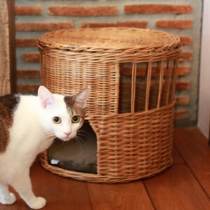 サイドテーブルとしても使える樹脂製ラタンの猫ちぐら『Pienet(ピエネ)』。透明なガラス天板は、上から中に居る猫ちゃんの様子を確認することができます。 丈夫でおしゃれな樹脂製ラタンはリビングに馴染み、くつろぎながら猫ちゃんとの大切な...