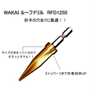 商品説明メーカー名WAKAI若井産業株式会社 製品名ルーフドリル製品番号RFD1250特徴 ・折板へのスムーズな穴あけに ・チタンコーティングで長持ち・ストッパー付きで作業効率アップ 使用上の注意折板(厚み0.8mm×2枚)の管通用です