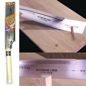 ダボ(埋木)の切断に最適。造作精密細工に。 ●背金のある部分は通常の導突鋸として使えます。 ●先端部分は曲げる事ができアサリなしですので埋木(ダボ)を切るのに最適!また板にキズが入りません。 ●込栓の切断などにも! ●一