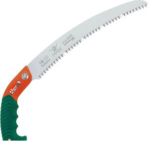 ・刃長:330mm。・荒目、曲刃鞘鋸です。・昔ながらのアサリ刃と特許技術を融合させたアメリカでも人気の鋸です。・パワフルかつスムーズな切れ味とコシの強い頑丈な鋸です。