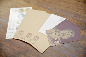 ギフト対応 まほろば大仏プリンオリジナルのレターセットです。 お手紙の他、のし袋やお年玉袋としても是非ご利用ください。 大仏さまイラスト入り便箋×6枚 封筒×3枚 シール7種×2枚 入り