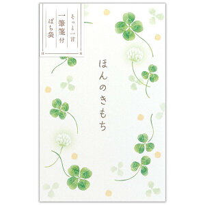 北海道・沖縄・離島へのお届けは別途送料がかかります。詳しくはこちら気持ちを添えられる一筆箋付きぽち袋です。「ほんのきもち」の表書き入りです。クリスタルラメがきらめきます。 四葉のクローバーとシロツメクサの花が、明るい気
