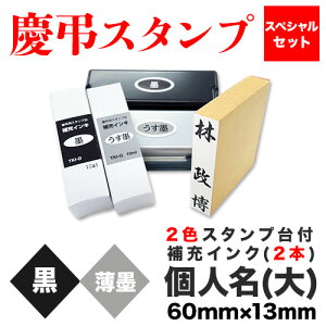 商品詳細 セット内容 慶弔スタンプ 個人名【大】1個 黒・薄墨の2色スタンプ台(ツインキー)1個 補充インク(墨・薄墨)各1本 捺印サイズ たて約60mm よこ約13mm 文字数 ■漢字は最大8文字 ...