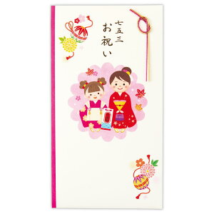 かわいらしいイラストの描かれた七五三祝いの御祝儀袋です。 表書きにメッセージが入っているのでより心のこもった七五三御祝をお贈りいただけます。 のしにはピンク色の箔押しを使用し、華やかさをプラスしました...