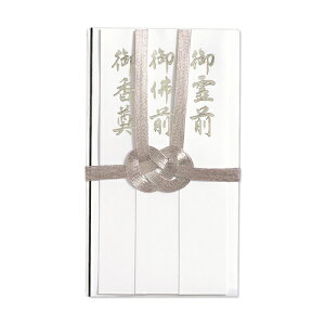 リニューアルに伴いパッケージ・内容等予告なく変更する場合がございます。予めご了承ください。 名 称 仏金封 総銀10本 御霊前 キ-Z381 内容量 1枚 製品寸法 W105×H185mm 特 徴 ◆弔事全般の金包みとして主に通夜・告...