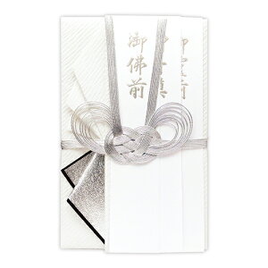仏事用の金封です。 繊細な双銀の水引細工をほどこした大判サイズの本格派ひだ折金封です。 本体は和紙を使用し、扇状に折り込みひだをあしらっています。 葬儀や法事に最適です。 包む金額の目安は10万円以上です。 銀箔の文字が印刷が