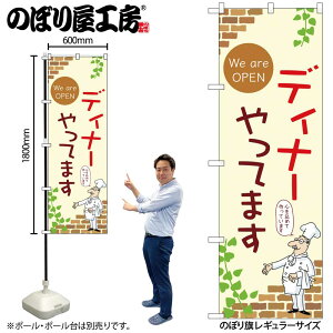 お店の商売繁盛にかかせないのぼり旗 他のお店と差をつけよう! 【商品説明】 サイズ:横幅600mm(60cm)×高さ1800mm(180cm) 材質:ポリエステル 縫製方法:三方三巻 入数:1枚 原産国:日本...