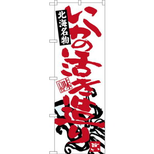店舗やお店を盛り上げるのぼり旗。表示内容は、いかの活き造り 北海名物です。