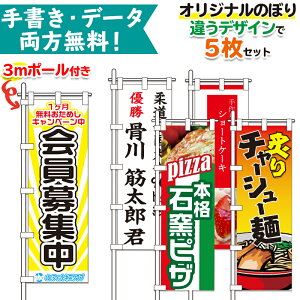 オリジナル(別注製作)のぼり 5枚セットです。 枚数分の専用ポールが付きます。 ※10枚以下ののぼりは発送時のぼりとポールと1つの箱に同梱になります。ご注意ください。 材質:テトロンポンジ(ナイロン系素材)...