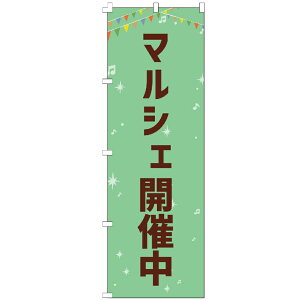 この「のぼり旗」は、マルシェ開催中のイベントに最適なアイキャッチです。サイズは60cm×180cmで、視認性が高く、遠くからでも注目を集めます。デザインはシンプルでありながら効果的で、通行人の目を引くこと間違いなしです...