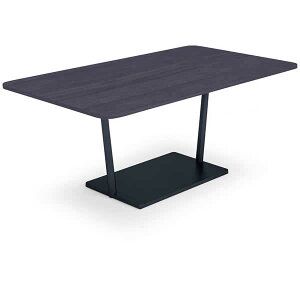 オフィスラウンジ向けテーブル/台形 T字脚/ハイテーブルタイプ 幅180×奥行89.5×高さ100.4cm リノリウム天板/チャコール 脚/ブラック