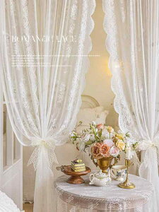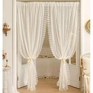 暖簾 フレンチ レトロ レース 寝室 出窓 白 パンチなし 波状 花 かわいい ポール フック 面ファスナー 風 日よけ 家 インテリア 屋内 仕切り ドア 目隠し パーテーション カーテン 装飾 子供...