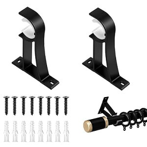 カーテンロッドブラケット2個セットです。 直径約18mm〜約22mmに対応しています。お家のインテリアにも馴染みやすいデザインとなっています。 壁からの距離も1.5cm程度の範囲で調節することができます。調節ネジで締めるタイプなのでサ...