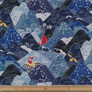 和調プリント柄の綿100%の生地です。 バッグや、のれん、パッチワークや袋物など、色々とお楽しみください♪カバーリングも素敵です。 布巾:約 108cm 素材:綿...