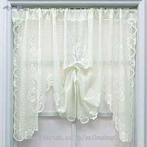 【花柄の刺繍】小花柄の刺繍が可愛らしく、程よい透け感がお部屋を明るくするカフェカーテンです。 【セット内容】のれん1