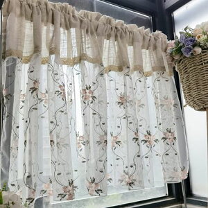 ?【花柄の刺繍】小花柄の刺繍が可愛らしく、程よい透け感がお部屋を明るくするカフェカーテンです。並べても、上下2段にしてもお使いいただける使いやすいカーテンです。?【透け感】このカーテンは薄手ので透け感があるので圧迫感を感