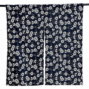 Kuai のれん 暖簾 薄手 幅85cm 丈90cm 藍染風 花柄 和風 和室 紺色 目隠し ショート 短い キッチン リビング インテリア 遮熱 間仕切り 飲食店 カーテン おしゃれのれんサイズ:幅85cm...