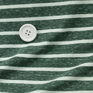 低 特徴 30/綿糸にネップをかませて独特な杢にしたオリーブ19ミリと生オフ5ミリ幅の かわいいボーダー天竺ニット 薄生地で少しテンション高めでクルってなります