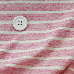 低 特徴 30/綿糸にネップをかませて独特な杢にしたピンク17ミリと生オフ5ミリ幅の かわいいボーダー天竺ニット 薄生地で少しテンション高めでクルってなりますが